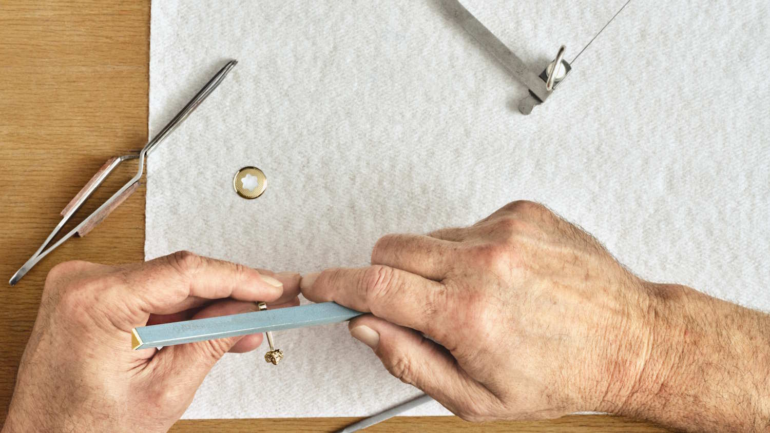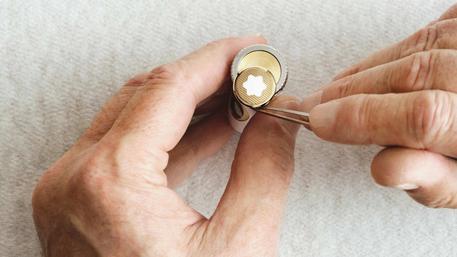 - Emblema Montblanc en nácar engastado en oro Au 750.