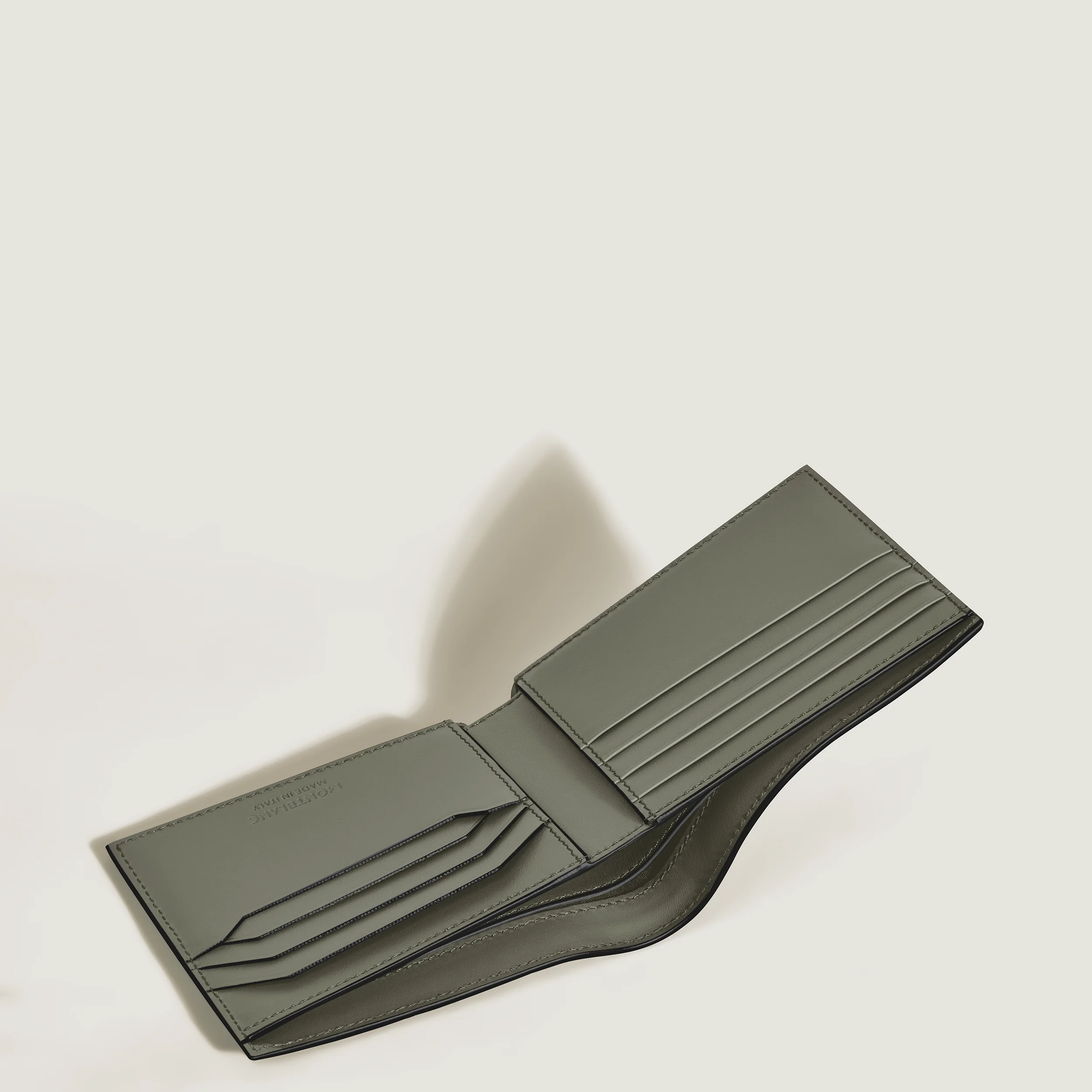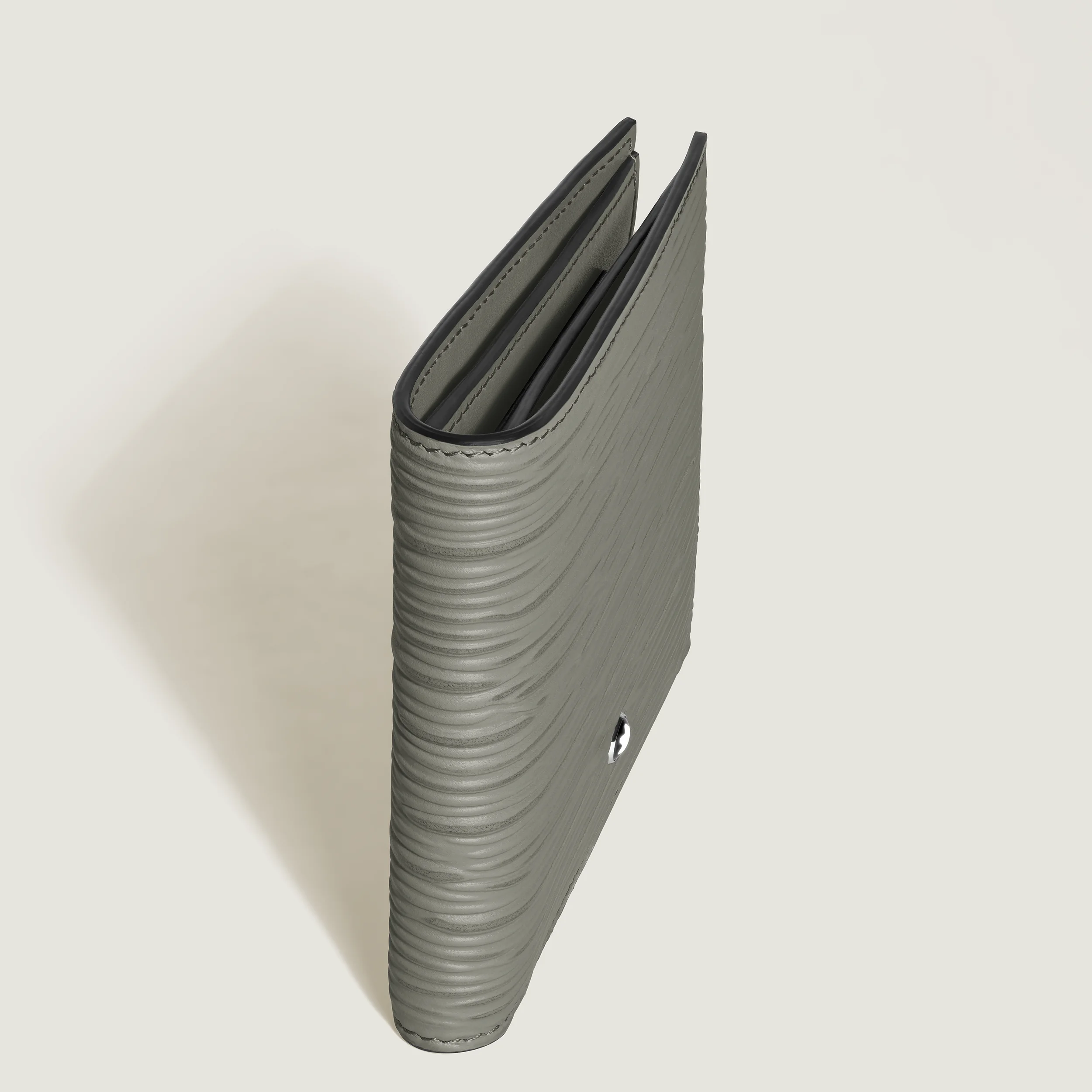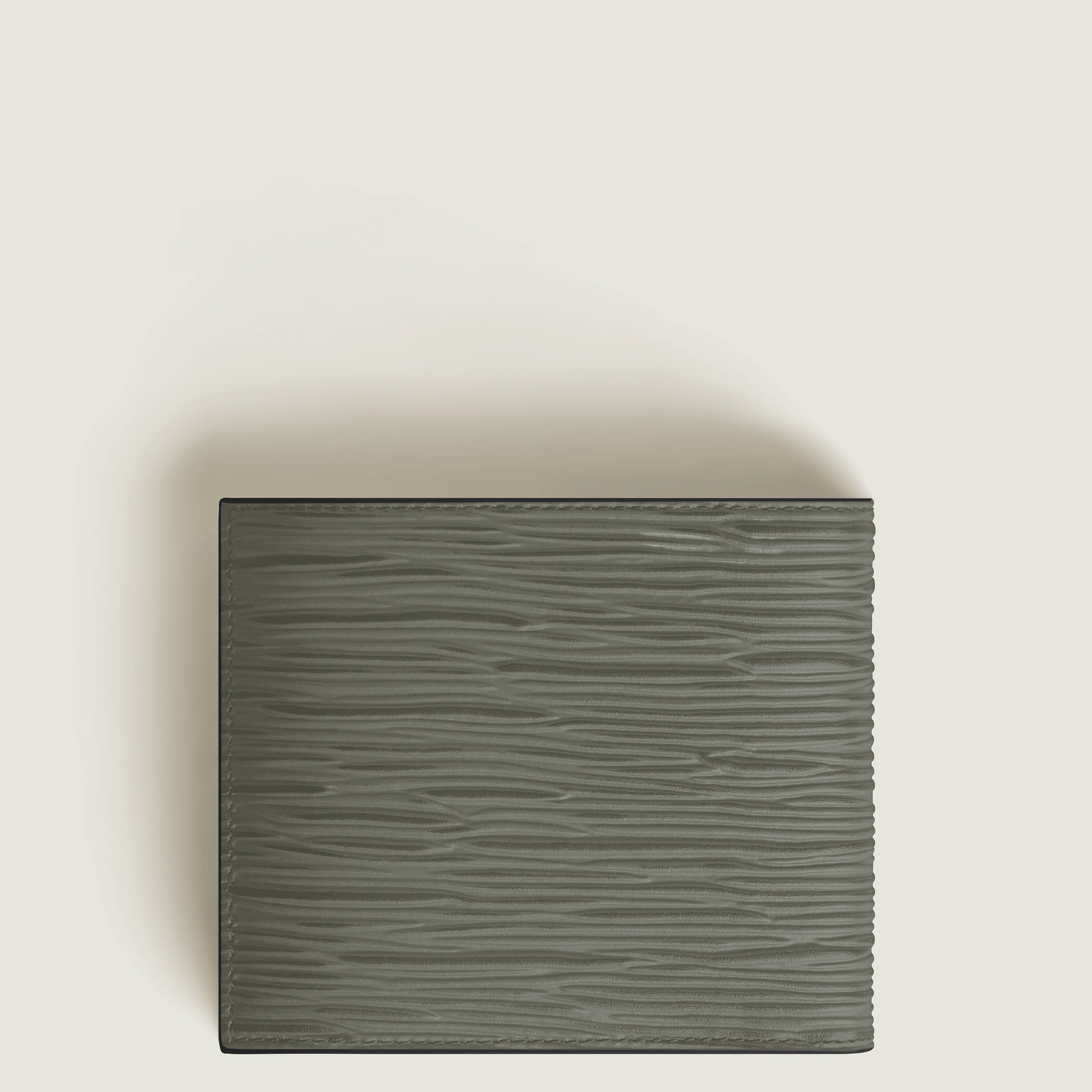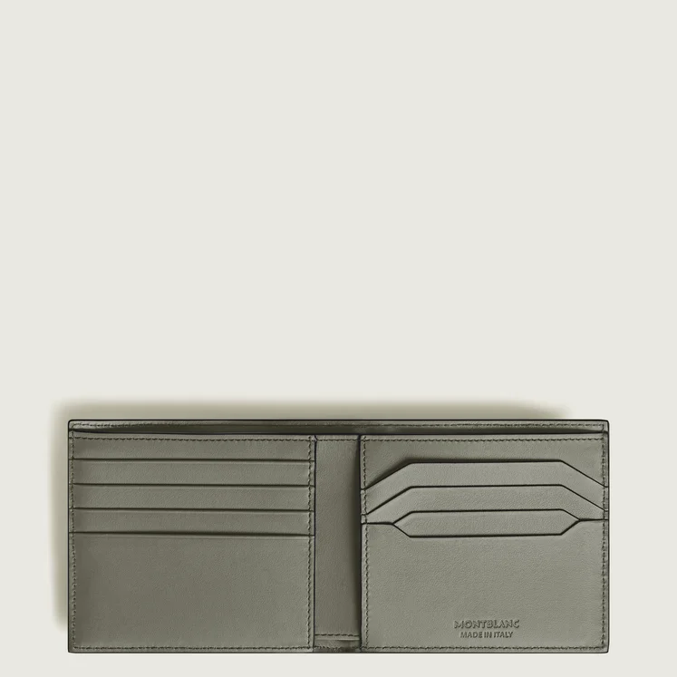 Esta cartera gris medio elegante y contemporánea cuenta con espacio para hasta ocho tarjetas de crédito. Ha sido confeccionada con piel de alta calidad estampada con un motivo de corteza de árbol y presenta dos compartimentos para guardar el cambio o billetes, así como dos bolsillos adicionales para pequeños objetos. El emblema Montblanc aporta un toque final al exterior.