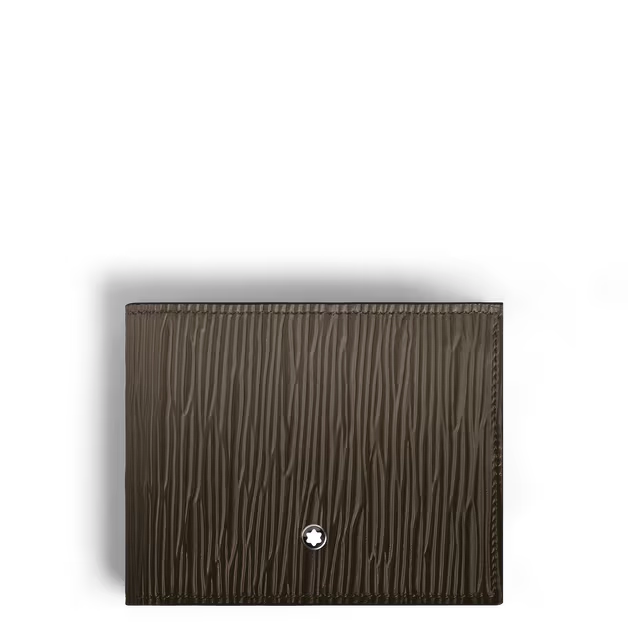Elaborada en piel Corteccia color caqui con un motivo de corteza de árbol repujado y un efecto Sfumato aplicado a mano, combina artesanía refinada con funcionalidad. En su interior presenta seis ranuras para tarjetas de crédito, dos compartimentos para billetes, dos bolsillos adicionales para recibos y el sutil emblema Montblanc en la parte delantera.
