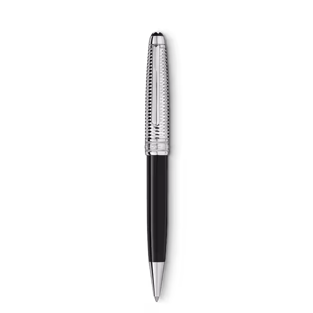 Efecto óptico sofisticado gracias al revestimiento en platino. Detalles icónicos Montblanc: emblema blanco, clip platinado y anillos grabados con el nombre de la marca.