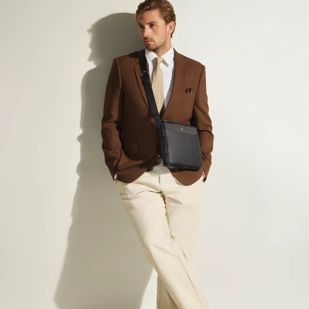 Además, la correa ajustable permite llevarlo cómodamente cruzado, dejando las manos libres en todo momento. Esta correa está adornada con una hebilla funcional inspirada en los distintivos cinturones de piel de Montblanc, un detalle que aporta carácter y refuerza su identidad sofisticada.