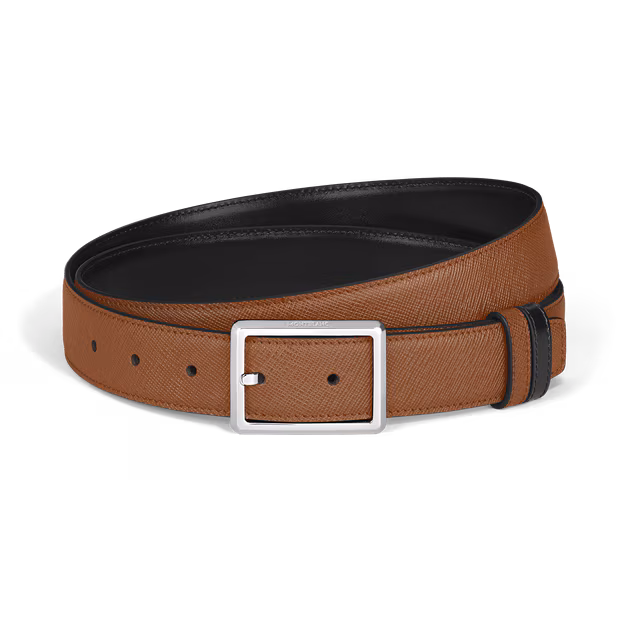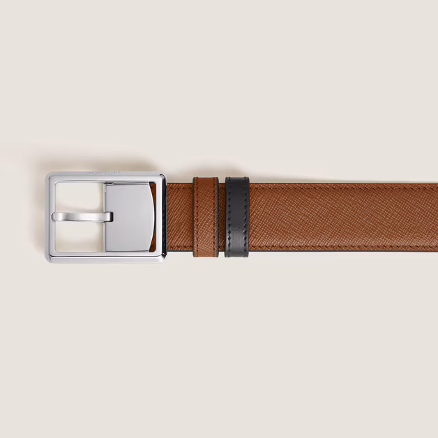 Cinturón reversible de piel con ancho de 30 mm. Dos acabados: piel Sartorial repujada en tono leonado y piel Meisterstück negra lisa.