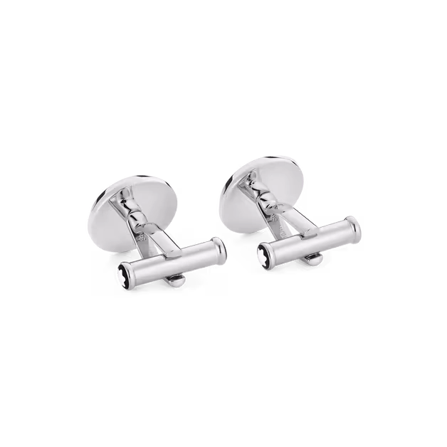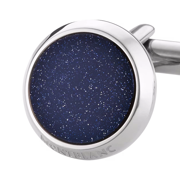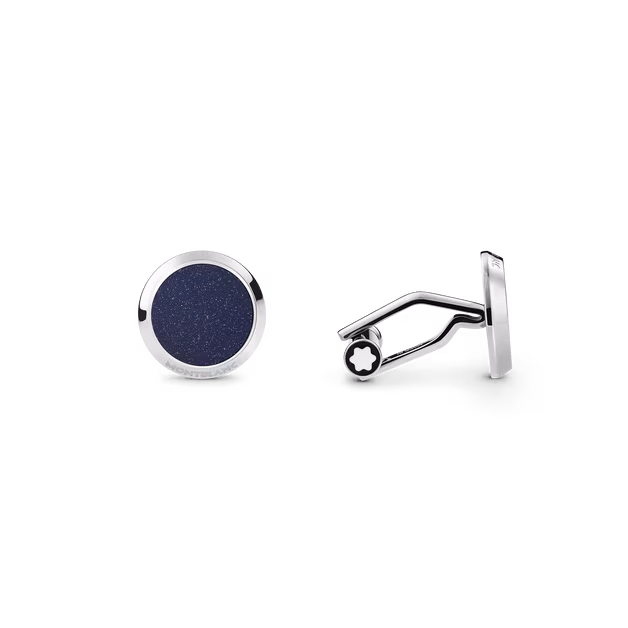 Los gemelos Meisterstück celebran la sobriedad y la elegancia. Asociada al artículo de escritura Montblanc Meisterstück, la eterna forma redonda en acero con incrustación de vidrio de aventurina azul crea una joya que luce todo el estilo Montblanc.
