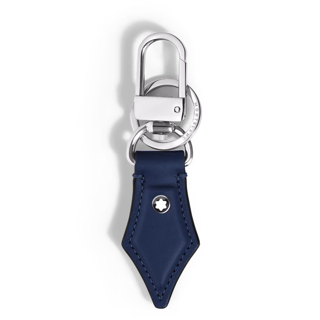 Llavero confeccionado en piel de becerro Meisterstück color azul tinta. Diseño inspirado en el plumín de una pluma estilográfica.