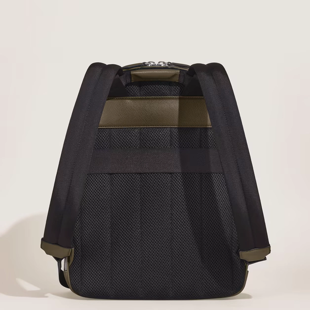 Elaborada en piel Sartorial repujada en un elegante tono caqui, destaca por su diseño refinado y versátil, ideal tanto para el entorno profesional como para los planes urbanos más dinámicos.