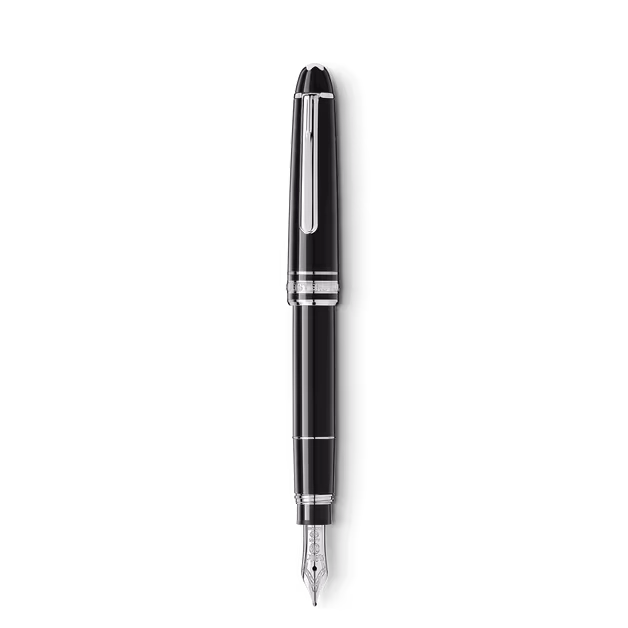 El Meisterstück. introducido en 1924 es toda una obra de arte que se ha convertido en uno de los símbolos de la escritura de lujo de alta calidad. El capuchón y el depósito están elaborados con resina preciosa negra y el icónico emblema blanco Montblanc aparece incrustado en la caperuza del capuchón.La pluma estilográfica está adornada con un plumín artesanal de oro 585 de 14 K rodiado.