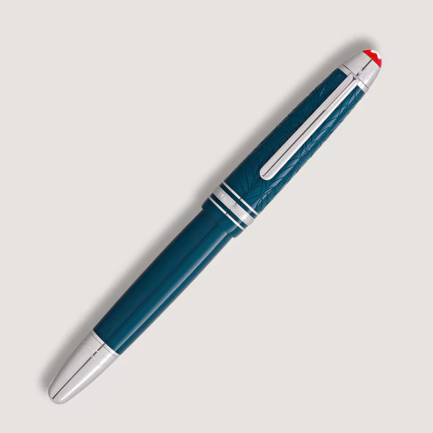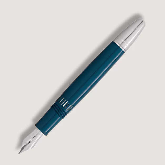 Pluma estilográfica inspirada en la obra Romeo y Julieta de William Shakespeare. Cuerpo elaborado en resina color verde azulado con detalles platinados.