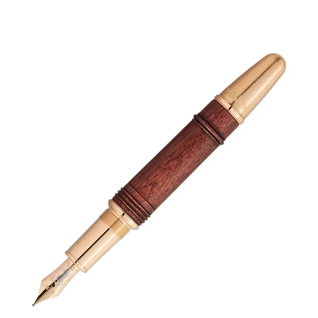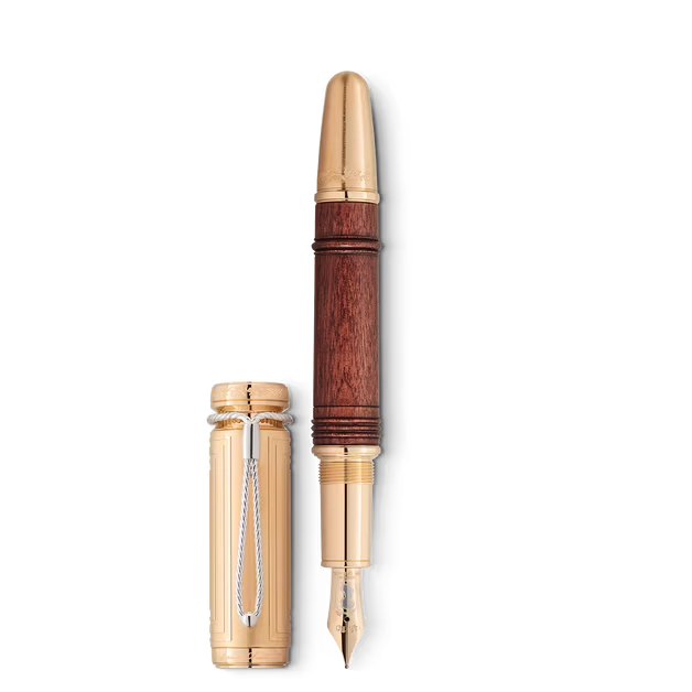 Estas palabras también adornan la incrustación de madera de la parte superior del capuchón que rodea el emblema Montblanc en madreperla.
