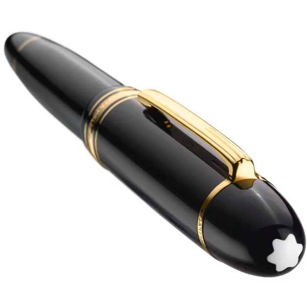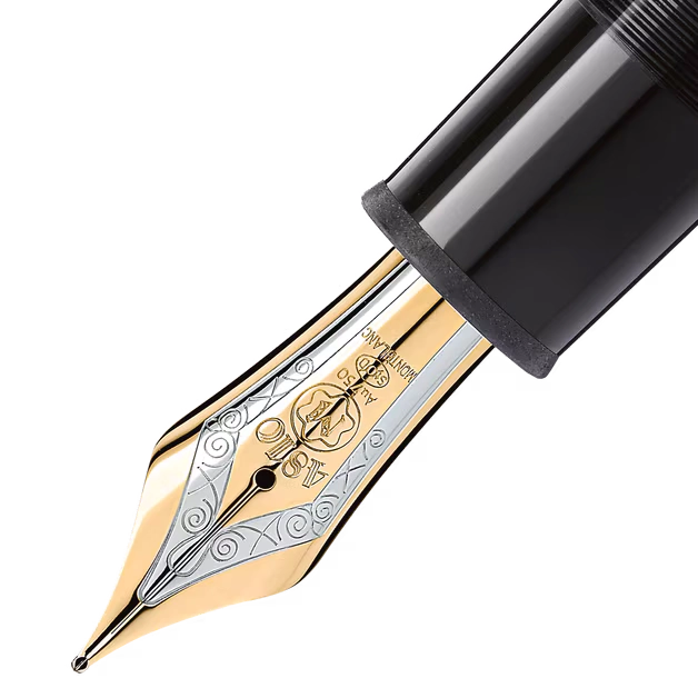 El capuchón y el depósito de la PLUMA M 149 DORADA MEISTERSTÜCK 132113 están elaborados en preciosa resina negra, un material que aporta profundidad y brillo atemporal al diseño. En la parte superior del capuchón se encuentra el icónico emblema blanco Montblanc incrustado, sello distintivo de calidad y elegancia reconocido en todo el mundo. Los detalles con acabado dorado realzan su carácter clásico y refinado, aportando un contraste armonioso y sofisticado.