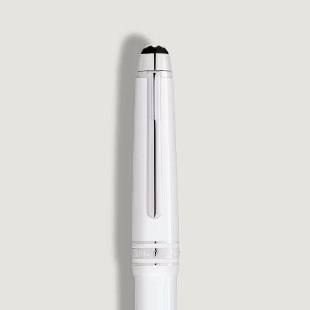 La PLUMA M CLÁSICA BLANCA 137120 combina resina preciosa blanca, detalles platinados y plumín de oro 585 rodiado en un diseño icónico y atemporal.