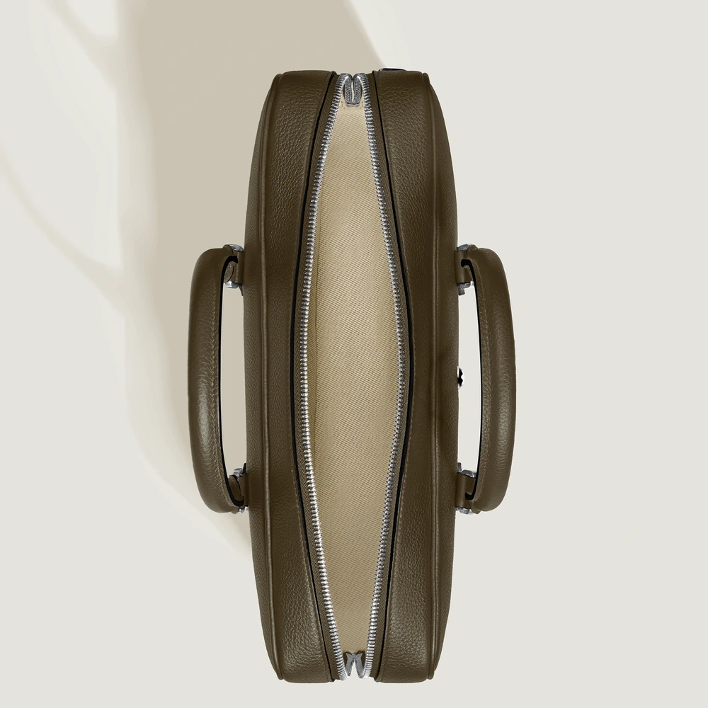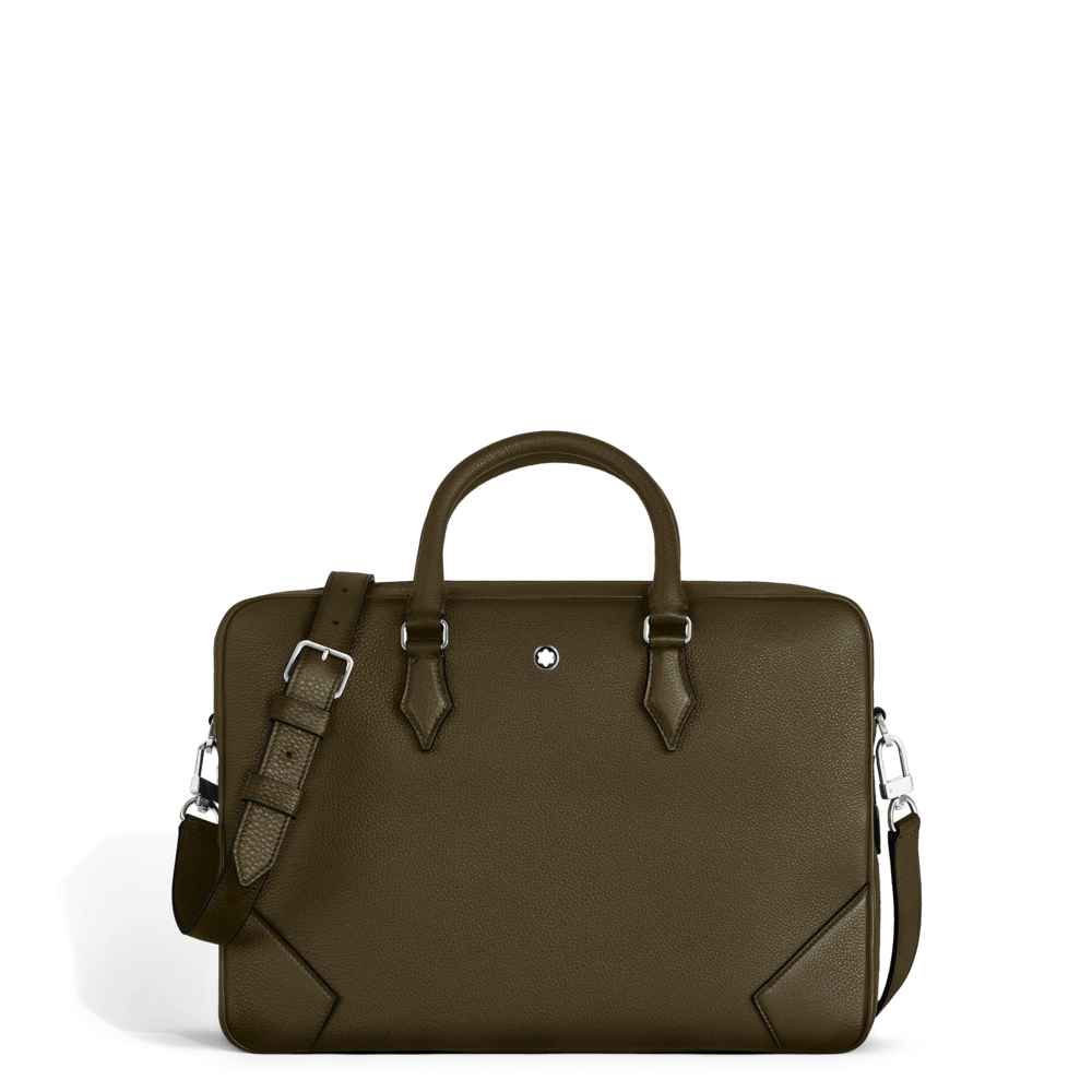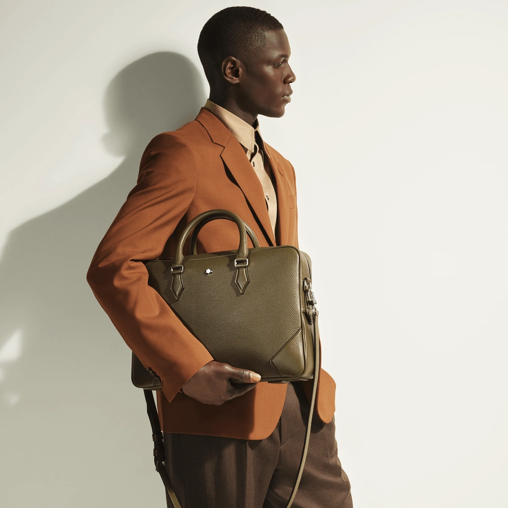 2.200,00 €Este elegante portadocumentos, confeccionado en lujosa piel graneada color caqui, celebra la conexión de Montblanc con la cultura de la escritura mediante detalles con forma de plumín en los tiradores y las asas.