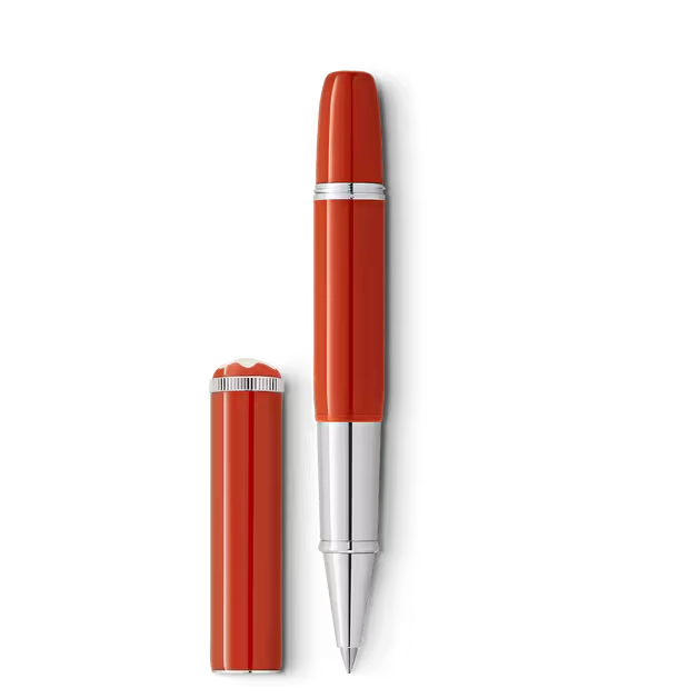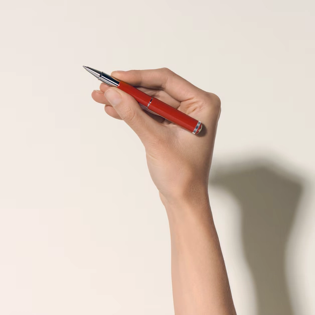 El diseño de laca preciosa color coral con detalles con revestimiento en platino, está coronado por un emblema Montblanc en resina preciosa rodeado por el icónico color coral de la colección Montblanc Rouge et Noir.